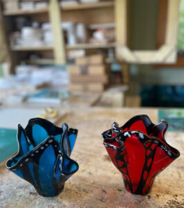 Ready to keep exploring the world of glass fusion? Once you’ve completed this beginner class, you’ll be eligible to join our intermediate-level workshops designed to take your skills even further. In the Watercolor Glass Fusion Technique class, you’ll learn how to create soft, layered backgrounds that mimic the look of watercolor paintings using glass powders and frits. Or, try your hand at sculptural glasswork in our Butterfly Vase class, where you’ll create a vibrant, freeform vase that transforms in the kiln through two firings. Both classes offer more advanced techniques and creative freedom—perfect for your next step in glass art!
