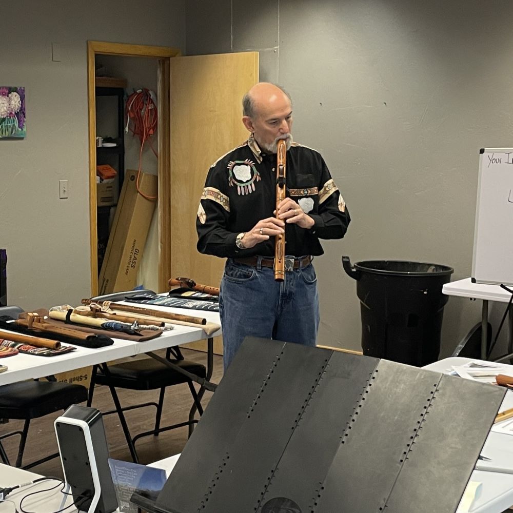 Through his one-of-a-kind, hand-crafted flutes, he shares his belief in the Native American flute’s ability to foster peace, balance, and healing of both body and mind.